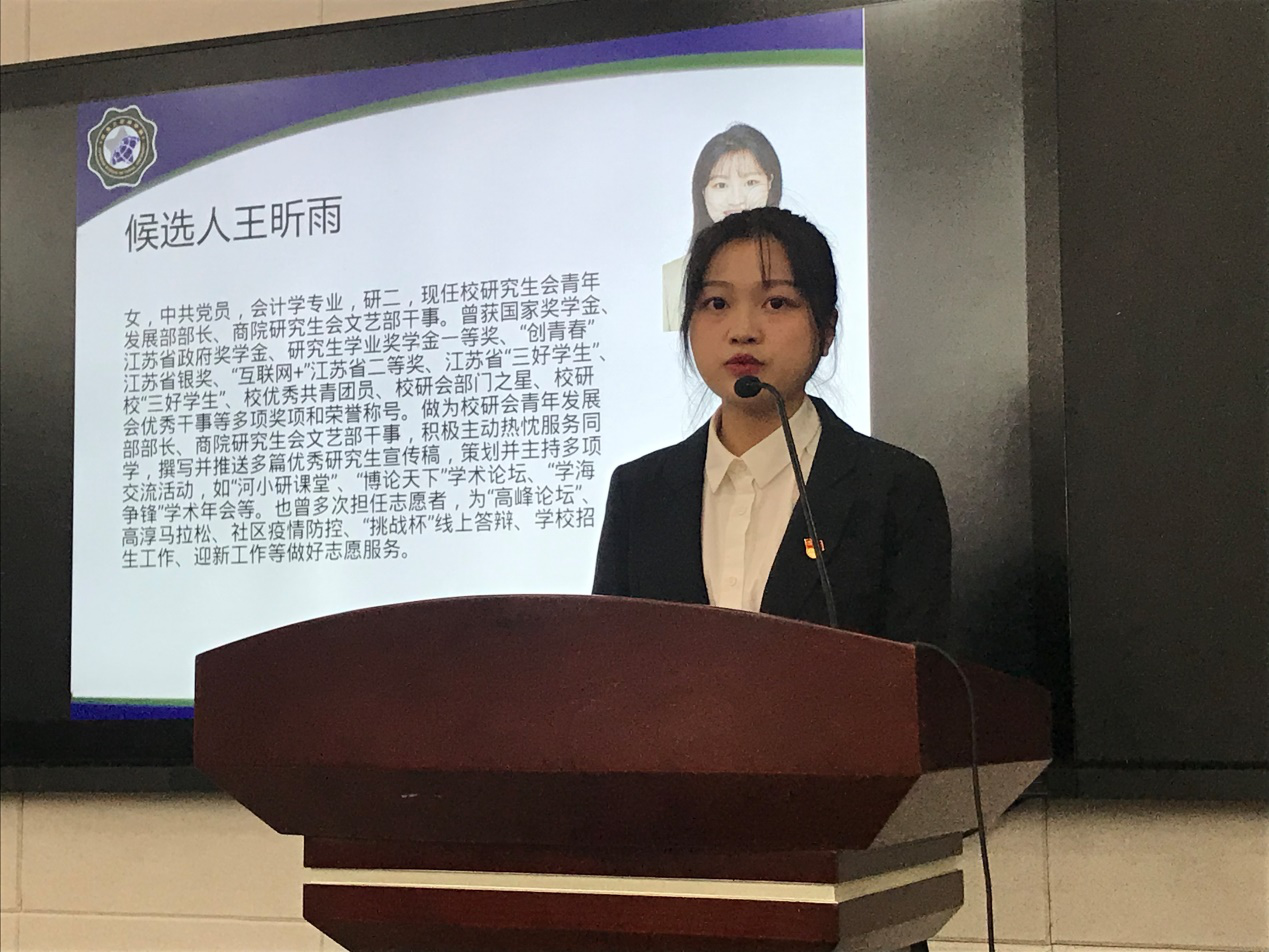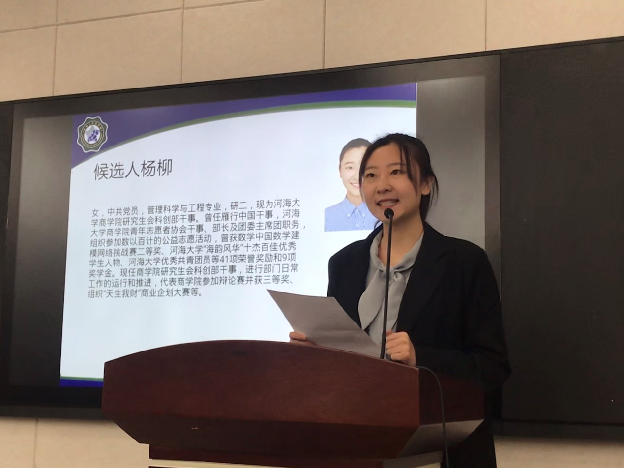 商学院团委书记陈璐老师代表学院领导对大会的召开表示热烈的祝贺,向学院广大研究生致以诚挚的问候。陈璐老师在讲话中充分肯定了学院研究生会过去一年做出的重要贡献和取得的显著成绩,并对学院研究生会的工作提出具体要求,寄予深切期望。她希望学院研究会继续以更高的标准严格要求自己,以服务广大研究生同学成长成才为主线,以锻炼自己为目标,勇于创新,积极地开展各项工作。
