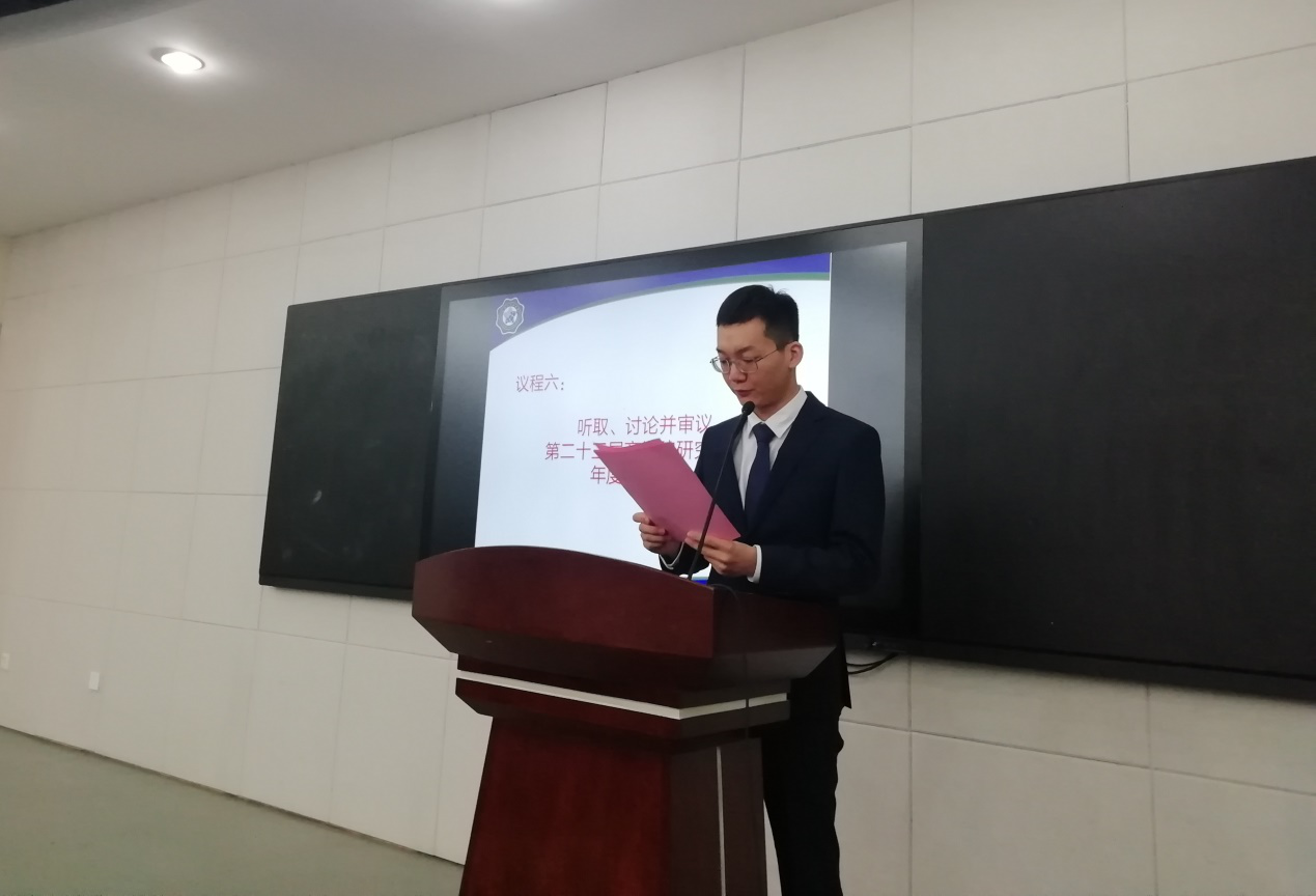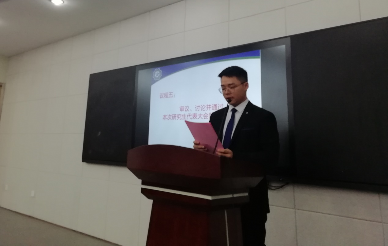 11月5日中午,黄色影片 商学院在博学楼A100召开了第二十四次研究生代表大会。黄色影片 团委书记陈璐老师、研究生辅导员于陶老师、伏方霓老师、张婧老师、校研会代表杨一帆同学,以及53名研究生代表参加了大会。