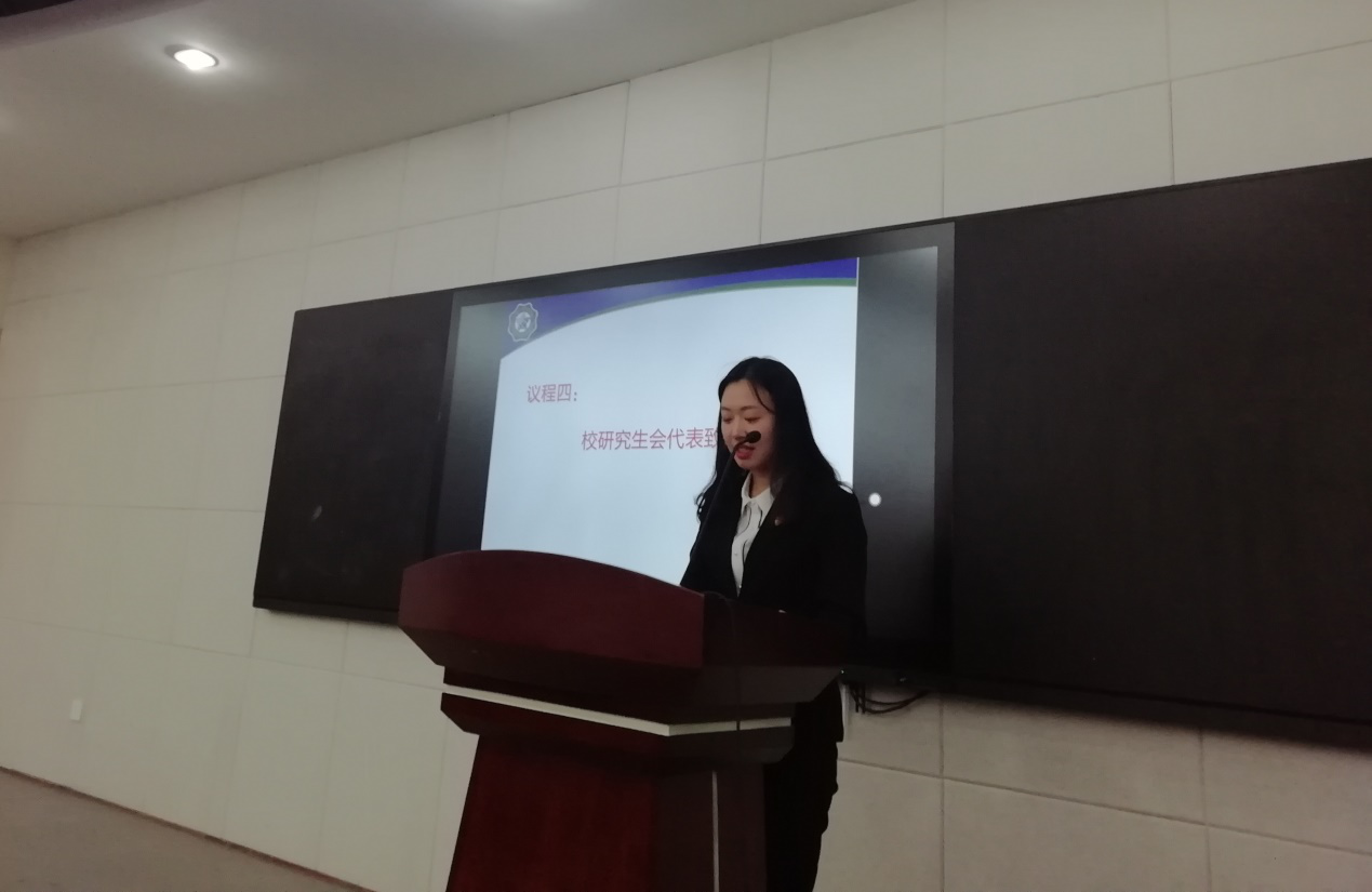 校研会代表杨一帆同学代表校研究生会发表讲话。她指出,黄色影片 研究生会的各项工作都交出了满意的答卷,在思想引领、学术科研、社会实践等多个方面取得了优异的工作成绩。同时,她希望黄色影片 研究生会紧跟时代步伐,进一步加强组织建设,不断创新工作思路,着力提高服务水平,努力开创研究生会工作的新局面。
