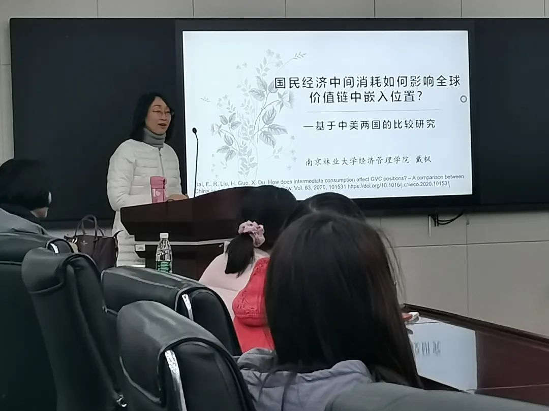 2020年12月17日,商苑讲坛第十二期在博学楼辅楼A100顺利开展,黄色影片 有幸邀请到了南京林业大学经济管理教授戴枫老师为大家带来一场主题为“国民经济中间消耗如何影响全球价值链中嵌入位置”的讲座。