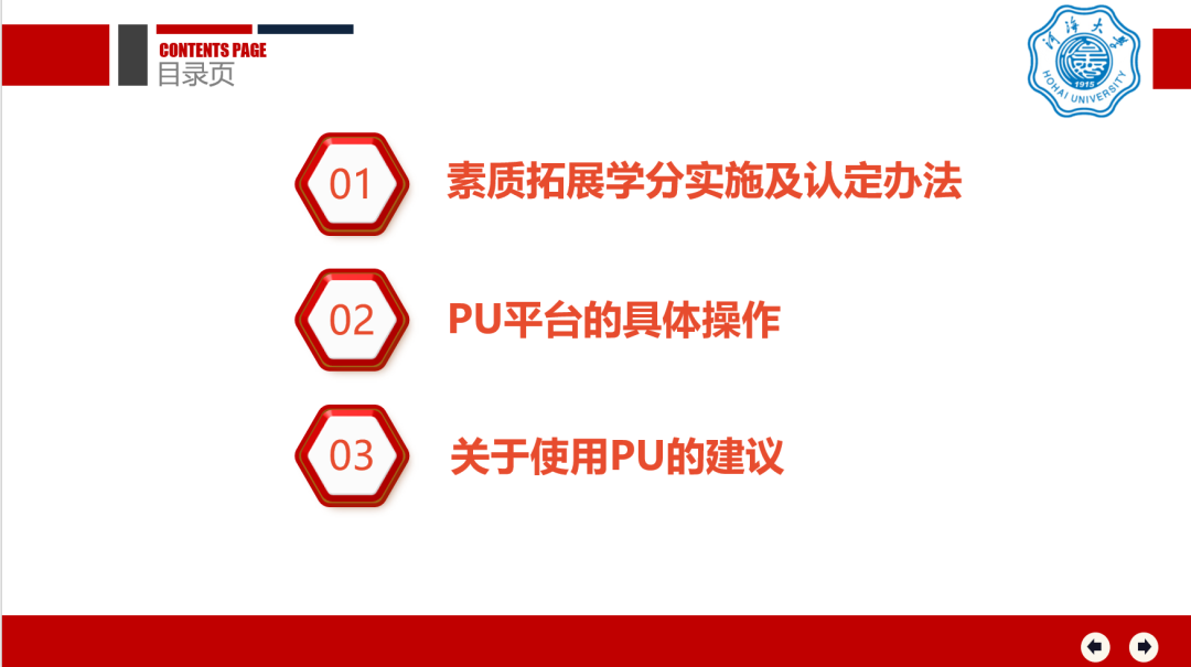培训会上,主讲人就素质拓展学分实施及认定办法、PU平台的具体操作、关于使用PU的建议三个部分展开详细讲解。
