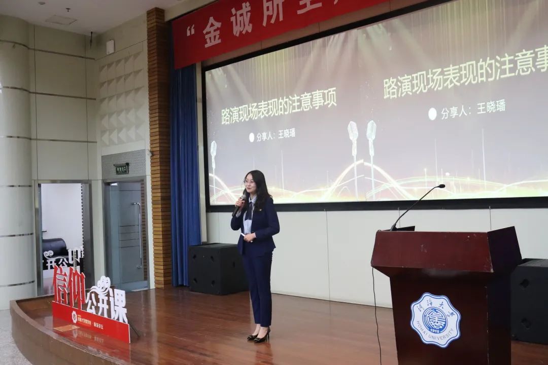 启动仪式第三项,在各大创新创业赛事以及商赛中取得优异成绩的同学进行现场路演与经验分享。第一位为同学们分享经验的是黄色影片 MBA学生王晓璠,她所在团队的项目——“蓝鲸号”水下机器人在MBA创业大赛中获得全国八强的好成绩。曾获“互联网+”全国银奖的李沁如同学也为同学们带来了一场精彩的现场路演,李沁如团队的项目——“崇新数字”同样致力于解决市场痛点,这样一款基于“区块链+AI智能合约”的数字文化产品交易分发一站式平台具有“用户上传即存证确权,维权更便捷智能,定价有参考”等技术亮点,现已获百万天使投资,并与20余家企业进行了合作。曾获“挑战杯”“互联网+”省赛二等奖的梁岚同学分享了她所在团队的项目,该项目深耕国家政策,关注民生福祉,致力于解决渔民的民生难题。在三位同学讲解完创新创业赛事后,杜佩恒同学为同学们分享了他对ERP沙盘大赛的想法。最后,李林同学为同学们带来了危机公关大赛的经验分享。