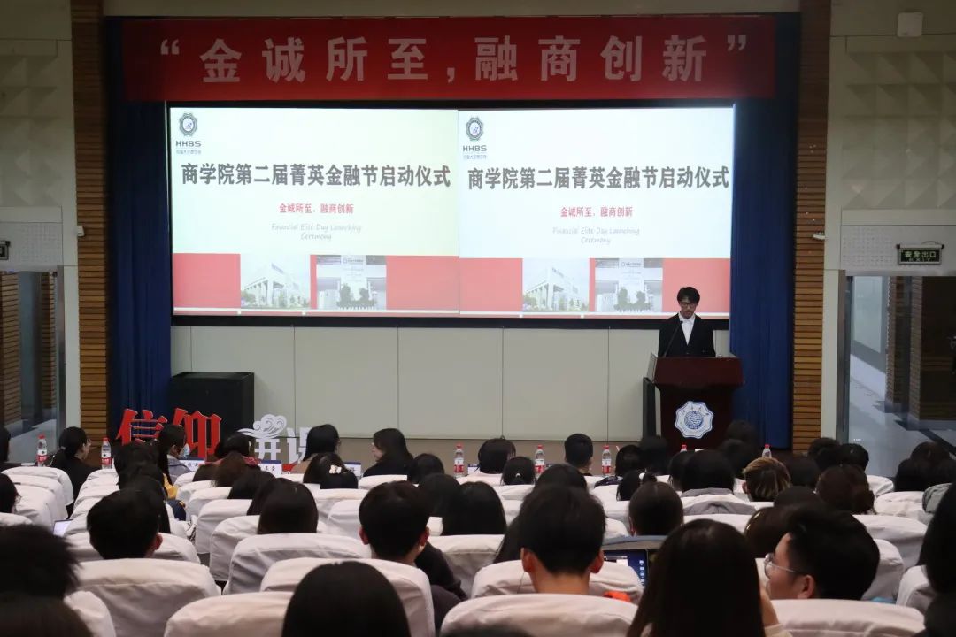 启动仪式第一项,党委副书记戴媛媛老师讲话。戴书记提到,菁英金融节以“金诚所至,融商创新”为主题,致力于为同学们提供发展自我、交流探索、增长才干的平台,同学们要不断提高创新意识和创新能力,为自己展开大学生涯的新篇章。