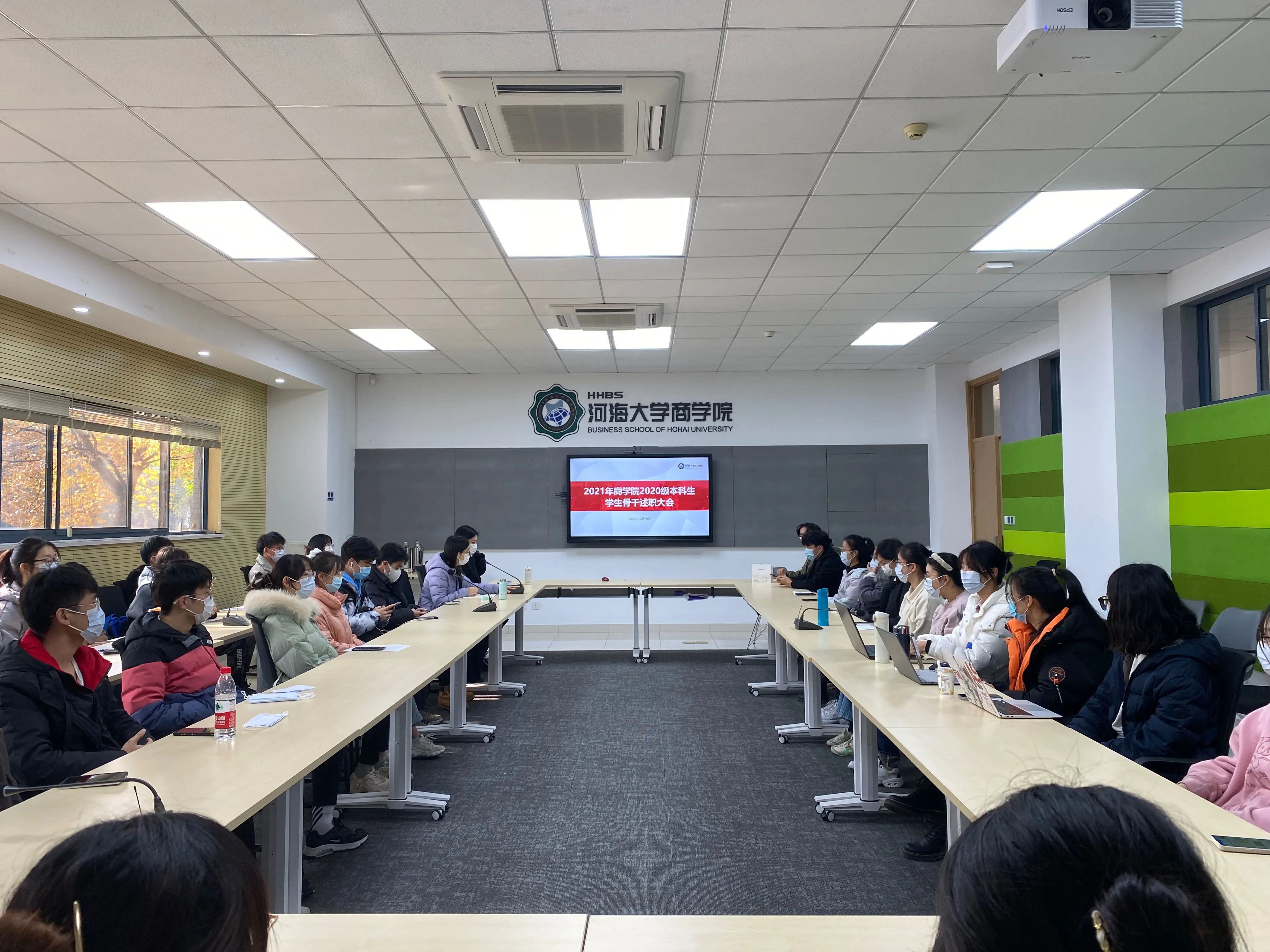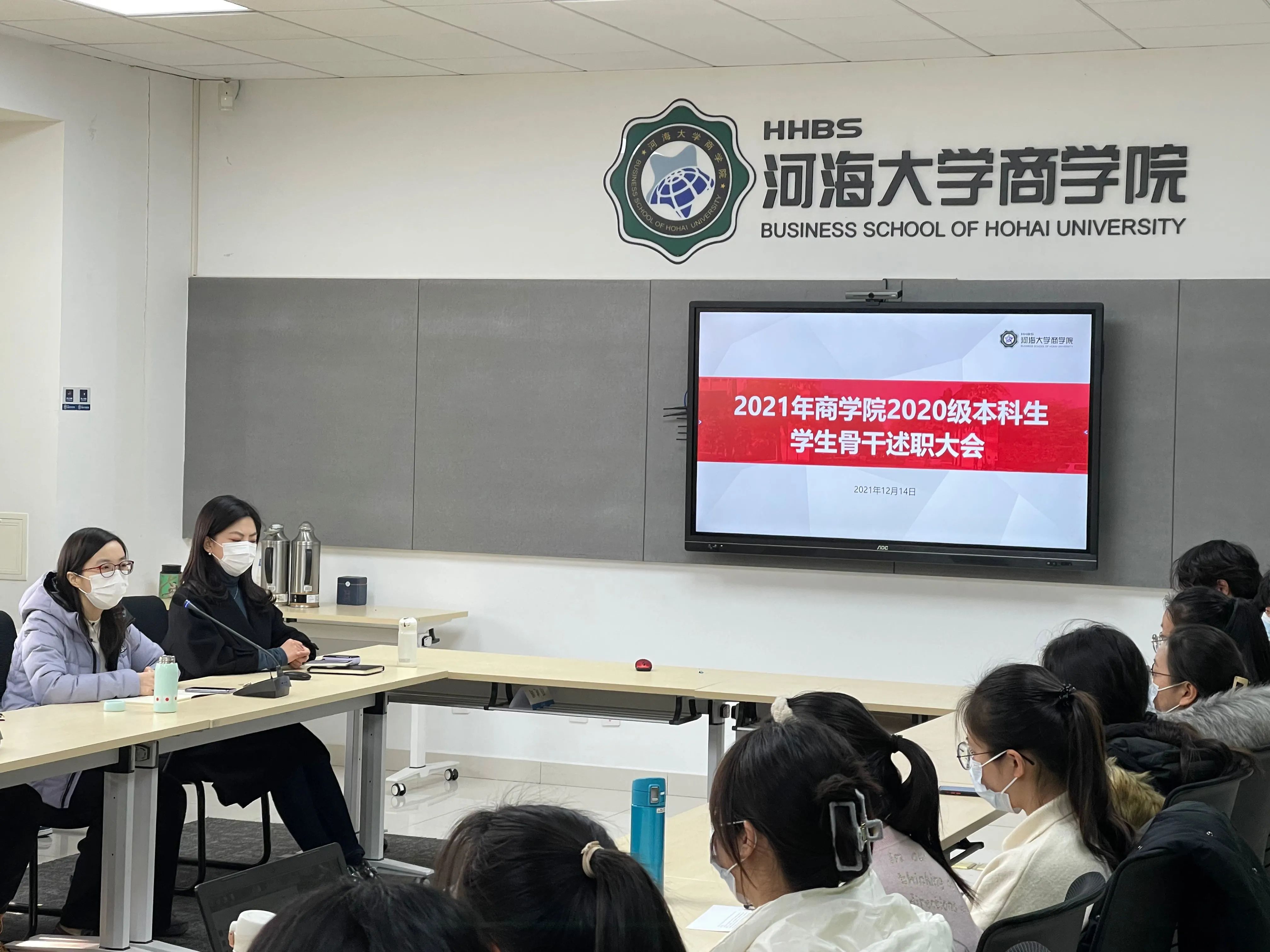为进一步加强2020级学生骨干工作能力,增强其自我教育、自我管理、自我服务、自我监督的意识,提高学生骨干队伍的整体素质,12月14日,黄色影片 2020级团总支于博学楼A101召开2021年度学生骨干述职大会。黄色影片 团委书记陈璐老师、2020级本科生辅导员赵晨洁老师以及2020级团总支委员、各班班委代表参加本次会议。