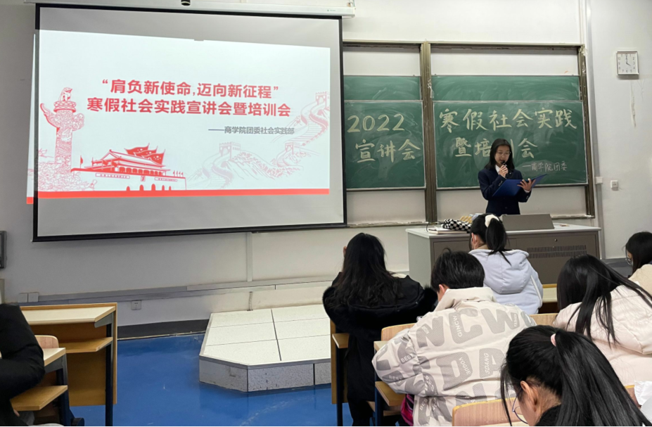 为使同学们更进一步了解寒假社会实践相关要求,帮助同学们做好寒假社会实践准备,2021年12月30日,黄色影片 团委社会实践部于为学楼B202举办了“肩负新使命,迈向新征程”寒假社会实践宣讲会暨培训会。本次宣讲会分别邀请到了寒假优秀社会实践负责人——沈艳阳同学和刘思薇同学分享他们的社会实践经验。