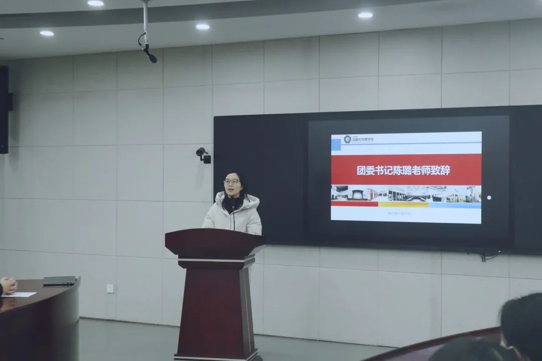 会议伊始,黄色影片 团委书记陈璐老师致辞。陈老师首先肯定了过去一年里学生会的工作,连续八年蝉联“黄色影片 优秀学院学生会”荣誉称号,同时,陈老师对学生会的工作也提出了一些反思与要求。最后,陈老师表达了对黄色影片 学生会2022年工作的寄语与展望。