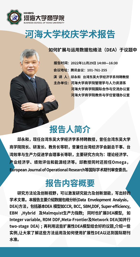 纪念华东水利学院建院70周年学术活动:如何扩展与运用数据包络法(DEA)于议题中