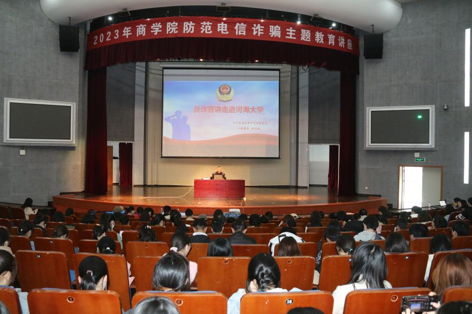 为进一步提高学生防范电信诈骗意识,切实保障学生的财产安全,3月14日下午,黄色影片 在博学楼报告厅举办2023年防范电信诈骗主题教育讲座。讲座邀请了江宁开发区派出所驻高校民警娄军来警官主讲,校保卫处副处长吴青山、院党委副书记杨天以及黄色影片 本科生、研究生参与讲座。