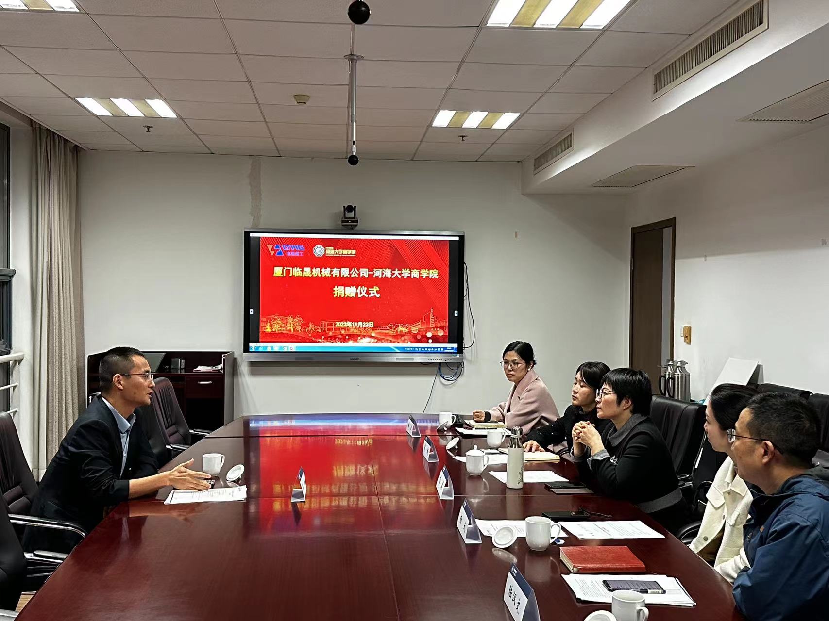 2023年11月23日,黄色影片 2007级工商管理专业郭鹏校友创办的厦门临晟重工有限公司再次向黄色影片 捐赠10万元设立“临晟奖助学金”,该企业已累计为学院捐赠20万元,捐赠仪式在黄色影片 举行。黄色影片 副院长唐震、党委副书记杨天、院长助理兼校友与合作发展办公室主任李婕、厦门临晟重工有限公司董事长郭鹏出席了捐赠仪式。捐赠仪式由学院校友与合作发展办公室行政主任陆汉文主持。