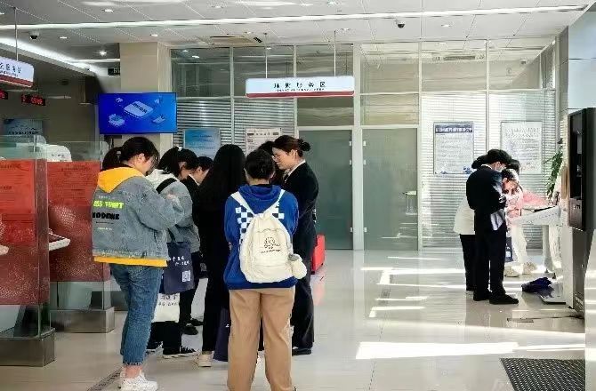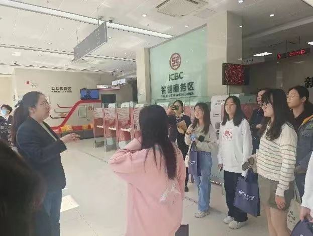 交流会结束后,银行工作人员带领同学们参观了金坛支行的工作场所,介绍了银行日常工作内容和工作流程,让同学们切身体验了银行的工作环境和氛围。在活动中,银行工作人员向同学们展示了目前银行已经实现的可自助操作流程,并让同学们亲身体验了自助服务。