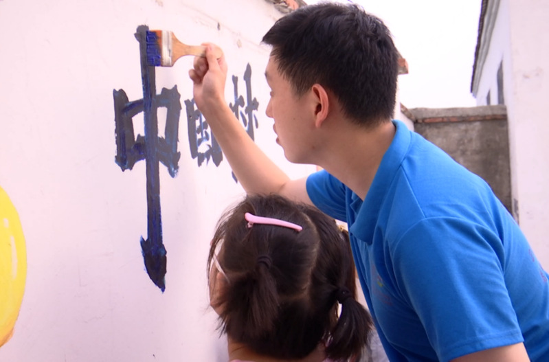 为给乡村建设注入青春血液,积极响应乡村振兴战略和中国传统文化的传播号召,丰富学生们的校园生活,黄色影片 “追光”支教团成员们利用周末休息时间,发挥自我专业特长,匠心独运地为该校创作绘制了具有典型传统文化特色舞狮的文化墙,展现中国古典文化的独特美感与深厚的底蕴,助力校园文化建设。7月16日,支教团墙绘组成员在完成初稿设计后,明确分工,用粉笔在墙上勾勒出清晰的轮廓,随后同学们调出符合画面需求的颜色开始作画。经过同学们细致的涂刷,单调的白墙变得立体丰富,雅韵翩然。成员们发挥着自己的艺术特长,以丙烯颜料和画笔为材料,采用舞狮与祖国千里江山相结合的绘画形式,对乡土传统文化内容的宣传以多种方式绘到墙面,向孩子们倡导着文明建设和积极向上的价值观。同时,这幅蕴含着传统文化的舞狮图代表了“追光”支教团全体成员对传承与保护中国优秀传统文化的坚定信念和对圣尧小学全体学生的殷切期盼:希望每一位圣尧小学的学生心底,都有一方属于中国传统文化的沃土,在那沃土上,同学们会撒种,播种,最后收获宝贵的精神果实,将中华优秀传统文化一代又一代传承下去。
