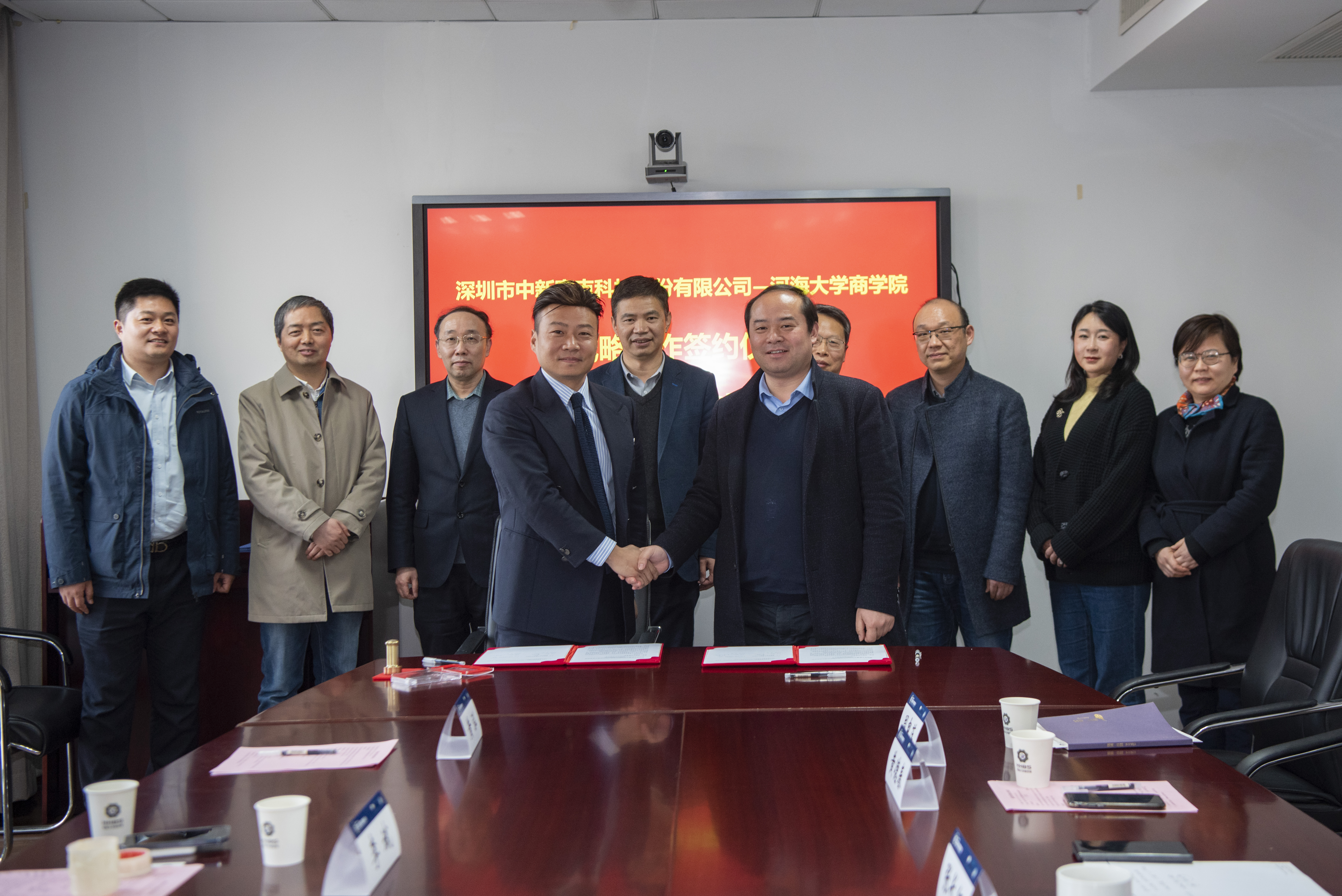 2024年3月8日,黄色影片 与深圳市中新赛克科技股份有限公司举行战略合作框架协议签约仪式。学院副院长张长征教授,副院长张可教授,世界水谷研究院执行院长黄德春教授;深圳市中新赛克科技股份有限公司副总经理、南京公司总经理王明意,副总经理、董事会秘书兼财务总监李斌以及学院相关部门负责人参加活动。