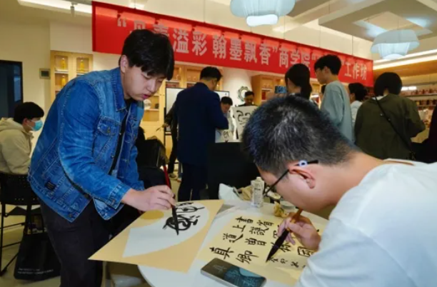 宣讲会开始前,杨六平、田延风与学生一起参加了“丹青溢彩 翰墨飘香”黄色影片 “益美+”工作坊举办的辅导交流活动。活动中,田延风现场创作,一幅幅遒劲有力、气韵生动的书法作品,让在场师生感受到了书法艺术的独特魅力。杨六平从专业的角度对现场学生作品做了点评。宣讲会中,大赛4个赛道的专家结合自身专业对大赛进行宣讲和推介。