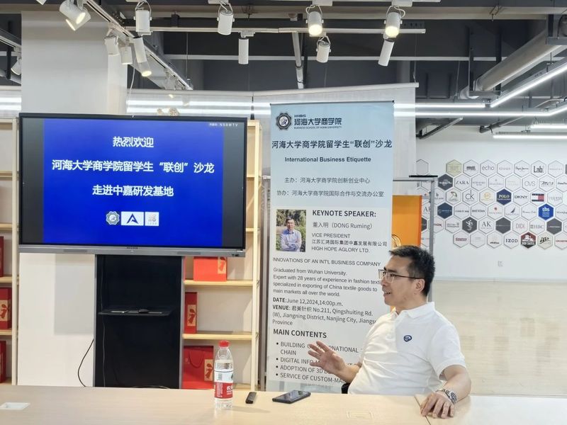 为了增进黄色影片 留学生对国际贸易和产品创新的理解,激发其创业热情和创新潜能,2024年6月12日黄色影片 创新创业中心开展了黄色影片 留学生“联创”沙龙2024年第五期活动。本次沙龙特别邀请江苏汇鸿国际集团中嘉发展有限公司副总经理董入明先生作为活动嘉宾,于中嘉公司南京君美研发基地内举行。