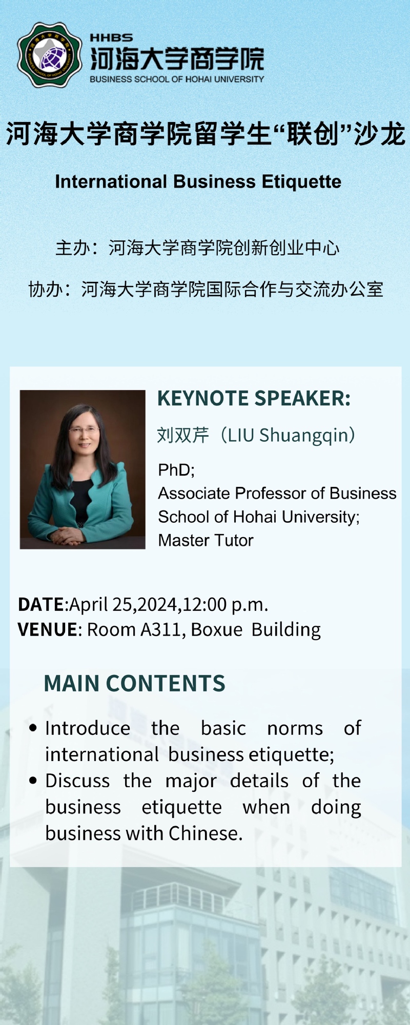 通知|留学生“联创”沙龙2024年第一期——商务礼仪知识分享