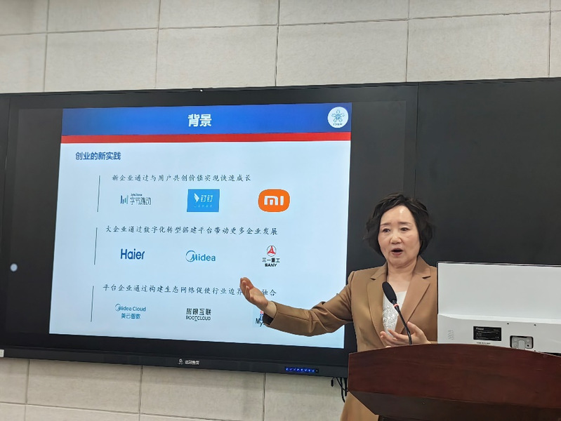 蔡教授进一步解析了创新驱动创业的触发、催化和聚变三个阶段,强调技术、制度和商业模式的交互在推动创业机会开发中的重要性,并以平台经济为例,生动地展示了数智技术如何加速企业与用户的共创价值过程。她还结合调研成果,分享了中国不同区域和行业的创新实践,特别是新能源产业中的成功案例,揭示了政府和市场双重作用下的创新创业模式。