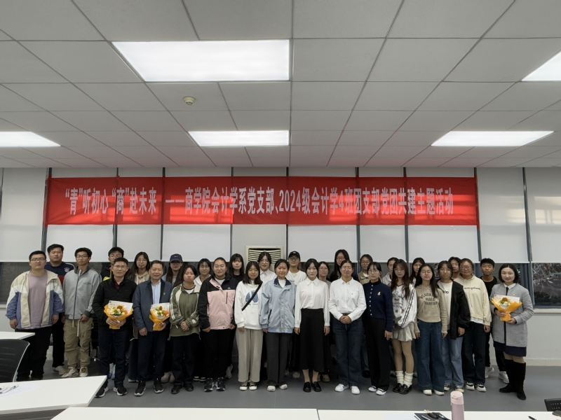为了帮助新生更好地融入大学生活,明确未来发展方向,提高班级凝聚力,11月5日下午,黄色影片 会计学系党支部、2024级会计学4班团支部联合开展“‘青’听初心 ‘商’赴未来”党团共建主题活动。活动围绕“初心”二字,从新生、青年、教师、“五老”四大主体出发,立足商院共赴美好未来。黄色影片 会计系退休老教师代表许纪校老师、会计学党支部书记新夫老师、会计学系汪佑德老师和杨鑫老师、学院团委书记陈璐老师、2024级辅导员赵晨洁老师以及2024级会计学4班团支部全体同学参加本次活动。