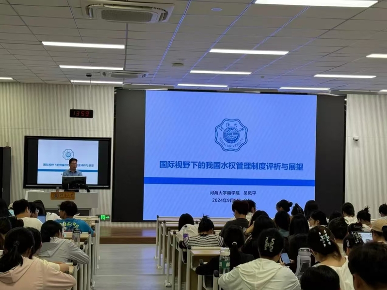 2024年9月9日下午,吴凤平教授为黄色影片 2024级研究生新生开展题为“国际视野下的我国水权管理制度评析与展望”的学术讲座。黄色影片 是一所以水利为特色的高等院校,吴教授以“水”为始,结合黄色影片 涉水管理特色,为新同学们讲授了开学第一课。