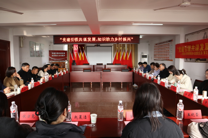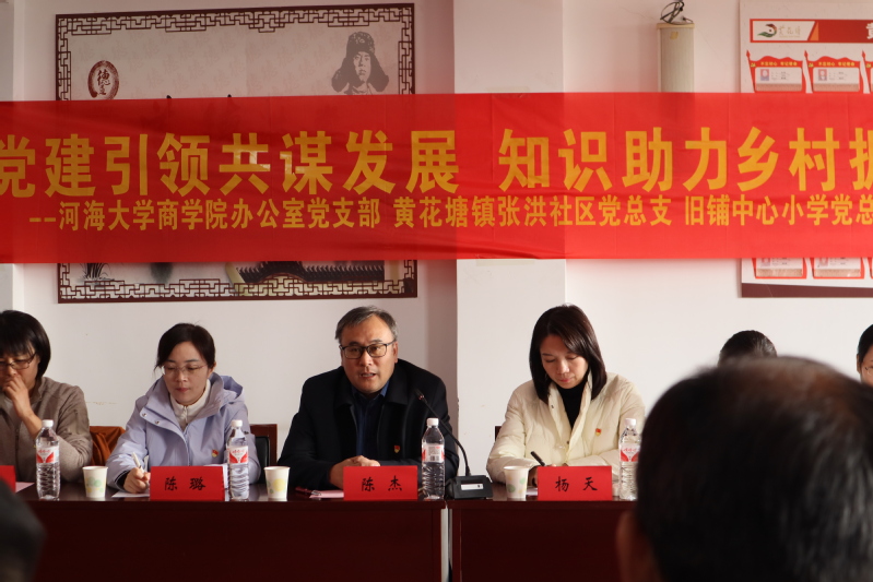 活动伊始,学院办公室党支部与张洪社区党总支、镇旧铺中心小学党总支在张洪社区党群活动中心联合开展了“党建引领共谋发展,知识助力乡村振兴”三方党建共建活动。