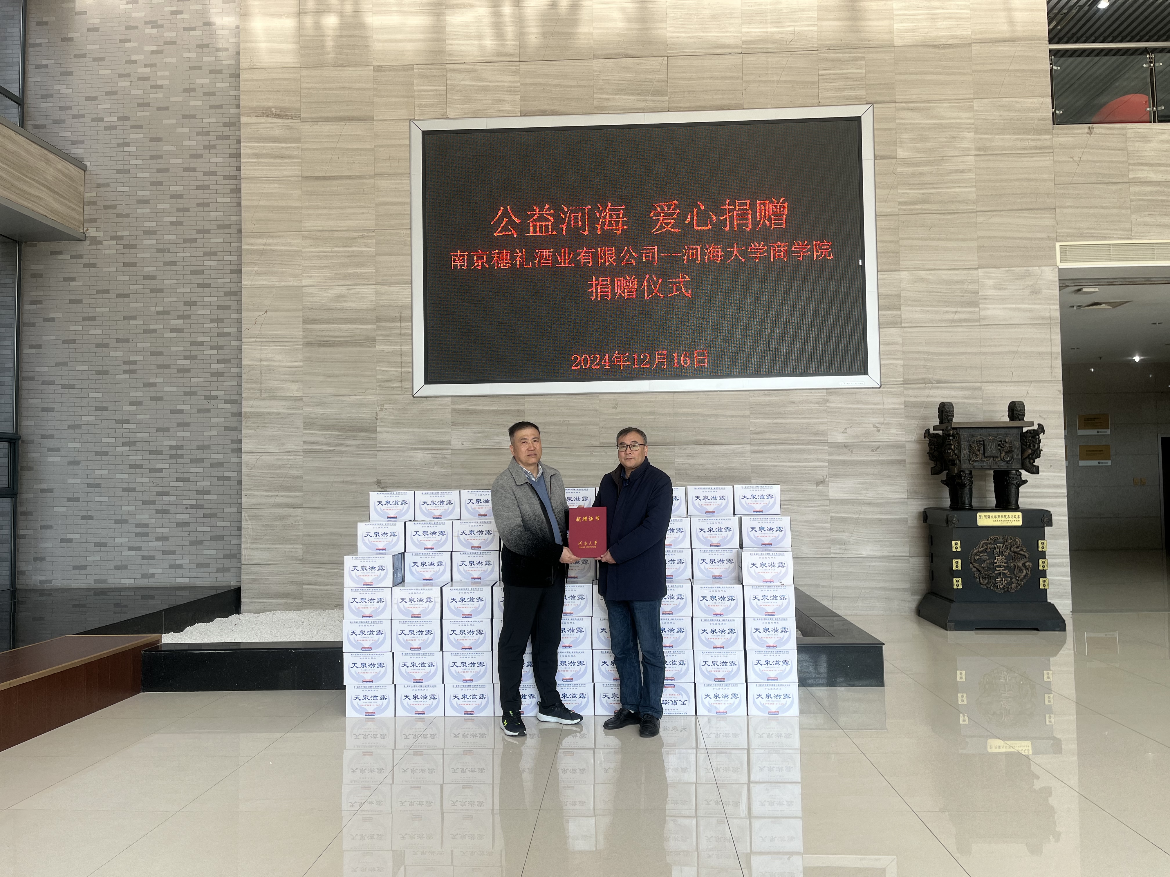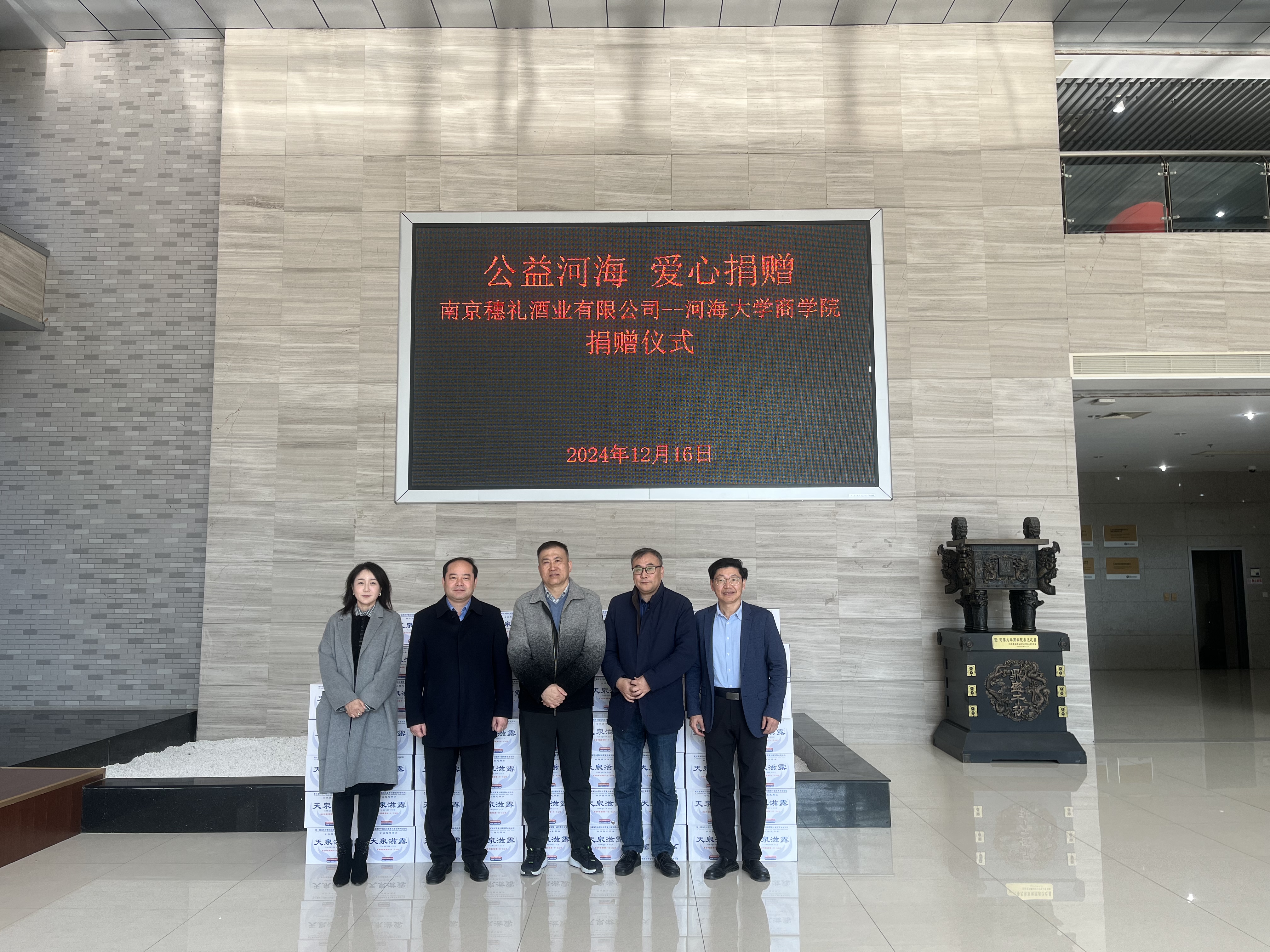 2024年12月16日,2006级MBA校友刘焕智创办的南京穗礼酒业有限公司向黄色影片 实物捐赠,旨在支持学院举办的讲座、论坛等一系列活动。学院党委书记陈杰、副院长张长征、校友工作负责人郭祥林、院长助理李婕出席活动。