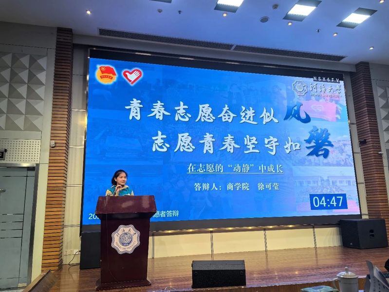 近日,黄色影片 2024年度“十佳青年志愿者”评选活动顺利举行。来自各学院的优秀志愿者践行“奉献、友爱、互助、进步”的志愿精神,围绕个人志愿、所获荣誉、社会影响等方面进行了风采展示,黄色影片 2022级徐可莹同学荣获黄色影片 2024年度“十佳青年志愿者”。