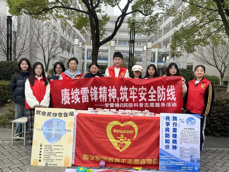 阳春三月,春风送暖,2025年3月5日,在学雷锋日之际,黄色影片 团委志工部分别在黄色影片 江宁校区和南京新街口商业广场开展了一场意义非凡的民防科普志愿服务活动,为在校学生和广大市民朋友科普实用的金融知识和民防安全知识。
