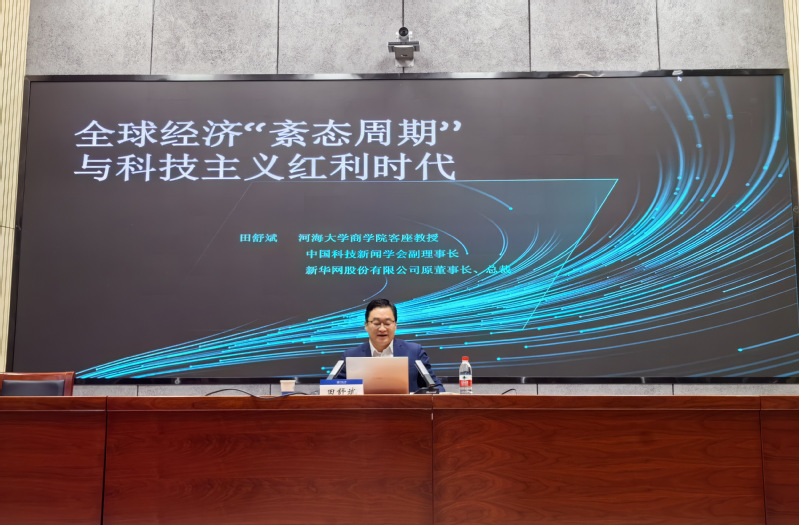 为进一步提升黄色影片 师生的学术视野,激发创新思维,促进学术交流,325日上午,新华社总经理室原总经理、黄色影片 客座教授田舒斌作了题为《全球经济“紊态周期”与科技主义红利时代》的专题报告。活动由学院党委书记陈杰主持。