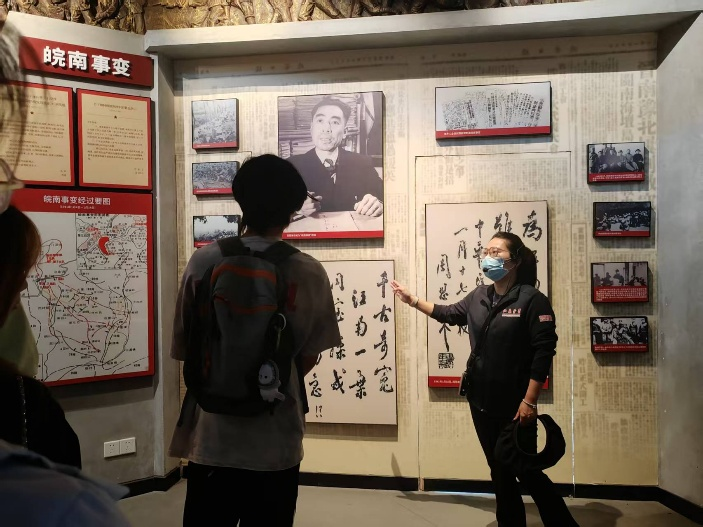 活动伊始,同学们在讲解员的带领下,参观了新四军历史研究馆。馆内通过丰富的文物、详实的史料以及生动的多媒体展示,全面展现了新四军从成立到发展壮大的全过程。新四军的历史与演变分为六个部分,每一部分都记录着一段波澜壮阔的历史。从新四军在艰难时局中组建,到深入敌后开展艰苦卓绝的抗日斗争;从克服重重困难坚持战斗,到为民族解放事业做出巨大牺牲和卓越贡献,同学们仿佛穿越时空,亲眼目睹了那段充满硝烟与热血的岁月,对新四军的历史有了更为深刻、全面的认识。