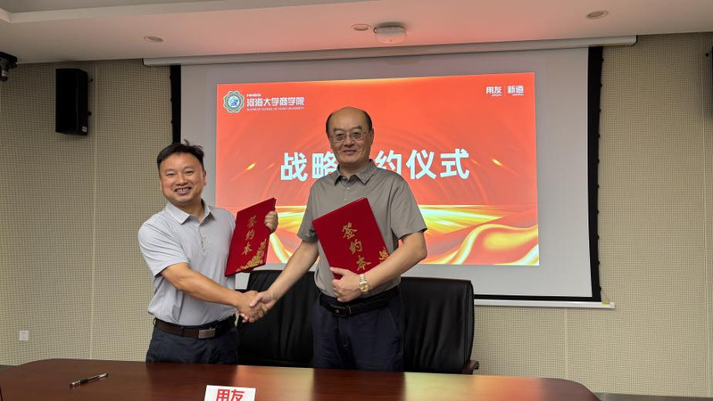 在开班仪式上,管理学与人力资源系主任邓玉林教授与新道科技股份有限公司宋健副总裁共同签署了战略合作协议,标志着双方校企合作进入新阶段。协议内容涵盖人才培养、课程建设、科研合作等多个领域,将为推动人力资源管理专业的数智化转型提供有力支撑。