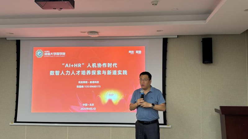 2025年8月1-3日,我院人力资源管理科研教学数智能力研修班在北京用友新道总部成功举办。本次研修班由学院战略人力资源管理方向骨干教师团队,联合用友集团数智人力解决方案专家、新道科技数智人力教育规划顾问及教研团队共同组织实施。
