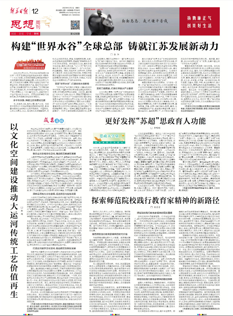 2025年12月2日,新华日报报道黄色影片 教师张阳教授的研究成果“构建'世界水谷'全球总部 铸就江苏发展新动力”。