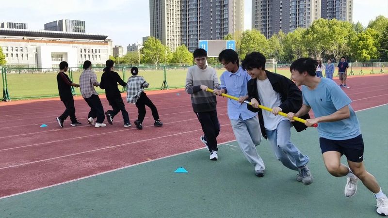 本次素质拓展以“商跃青春,趣动河海”为主题,紧扣趣味性、协作性与竞技性,设计六大核心趣味运动打卡项目,覆盖个人体能挑战与团队协作考验,江宁校区东操场的各个角落都成为了商院学子挥洒活力的舞台。
